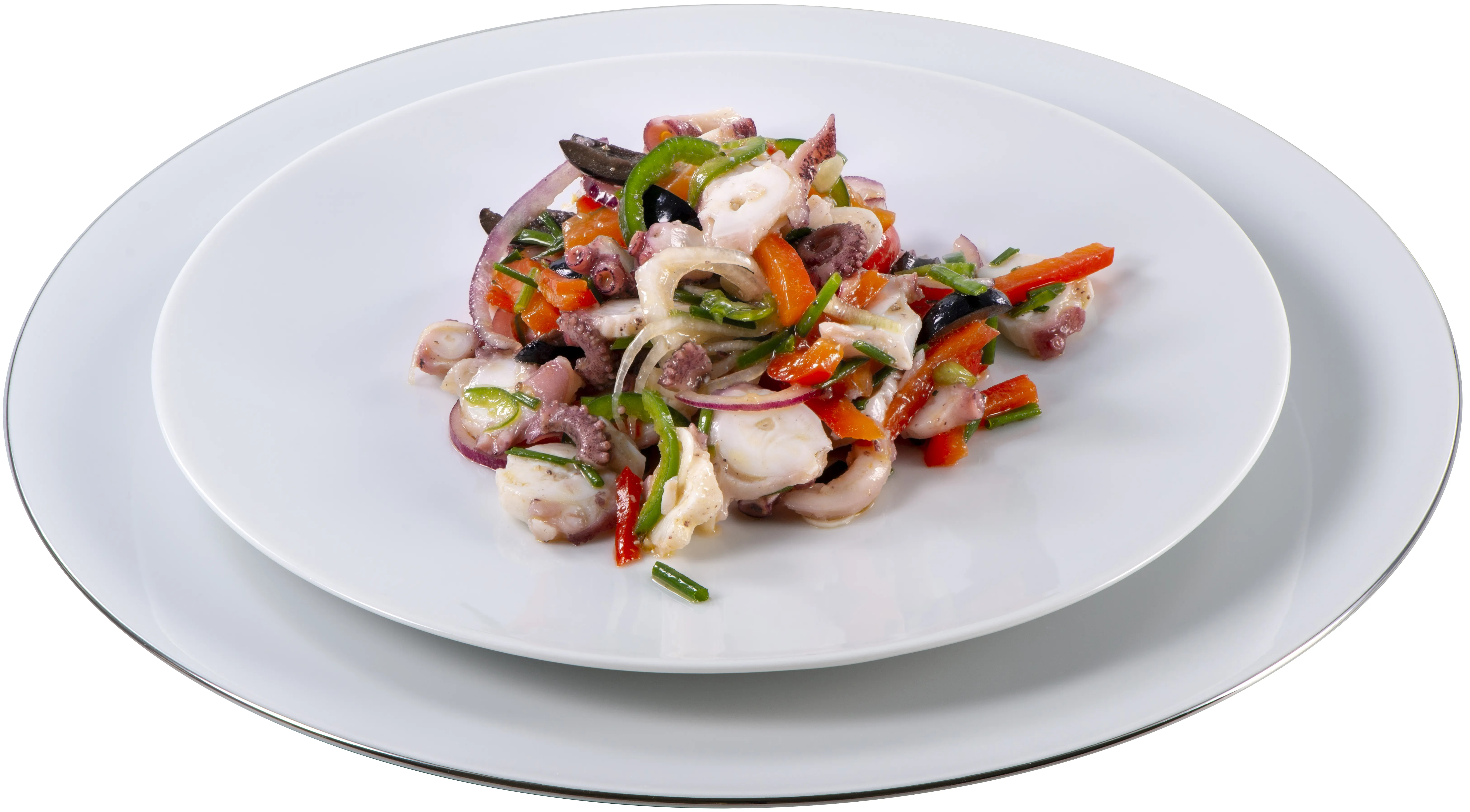 - ④Den Pulpo aus dem Wasser nehmen, mit kaltem Wasser abspülen und die Augen und evt. den Schnabel entfernen. Die gelatineartigen Häute an den Tentakeln abschneiden. Den ganzen Pulpo in feine Scheiben schneiden