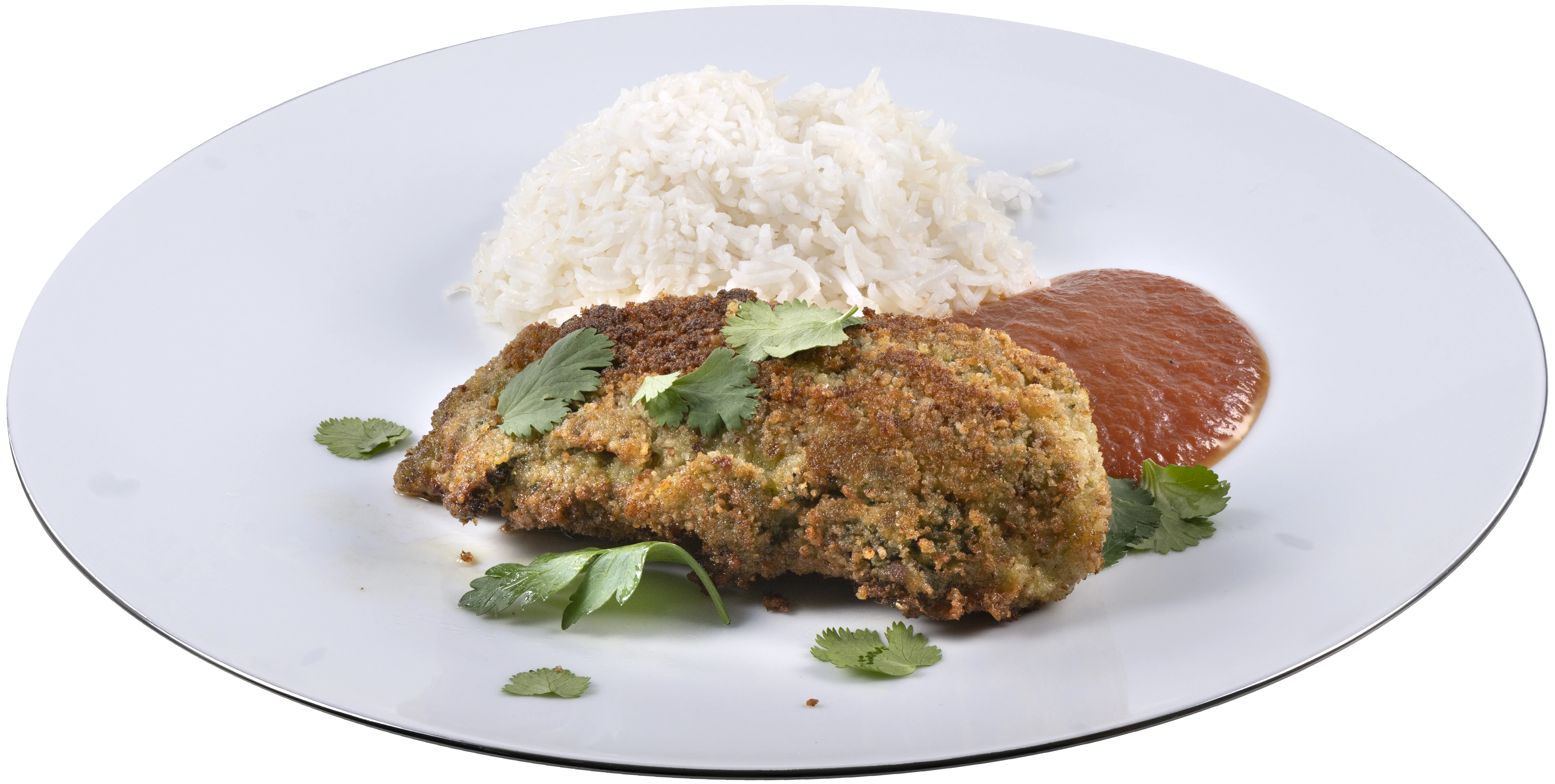 - ⑲Auf den Tellern mit den Limettenschnitzen und wenigen Korianderblättern anrichten. Basmatireis und "Sweet Tomato Gravy" passen sehr gut dazu