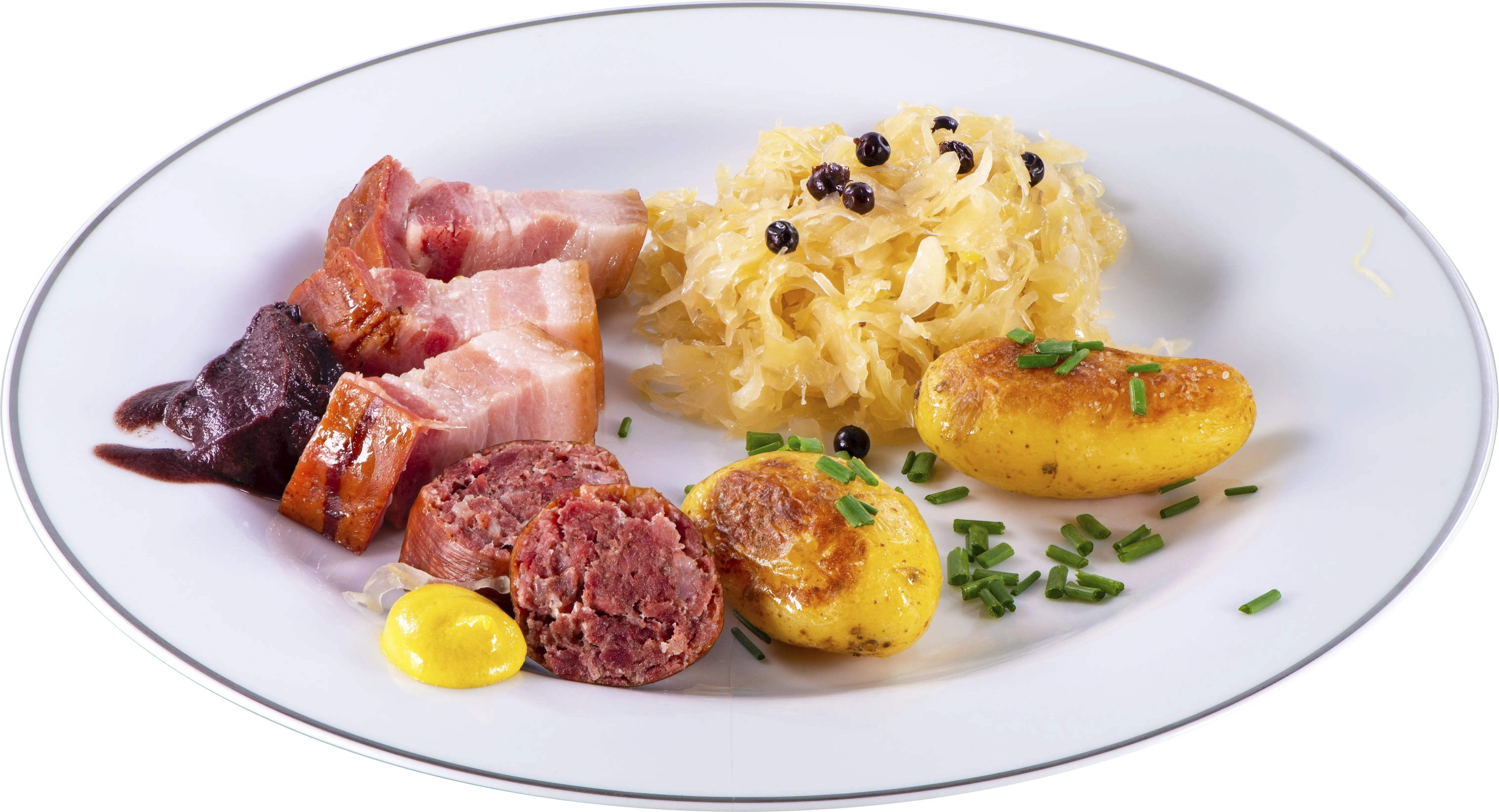nach dem Rezept Speck, Saucisson, Sauerkraut, und Kartoffeln von Irène Bopp aus dem Buch "Irène's Klassiker"