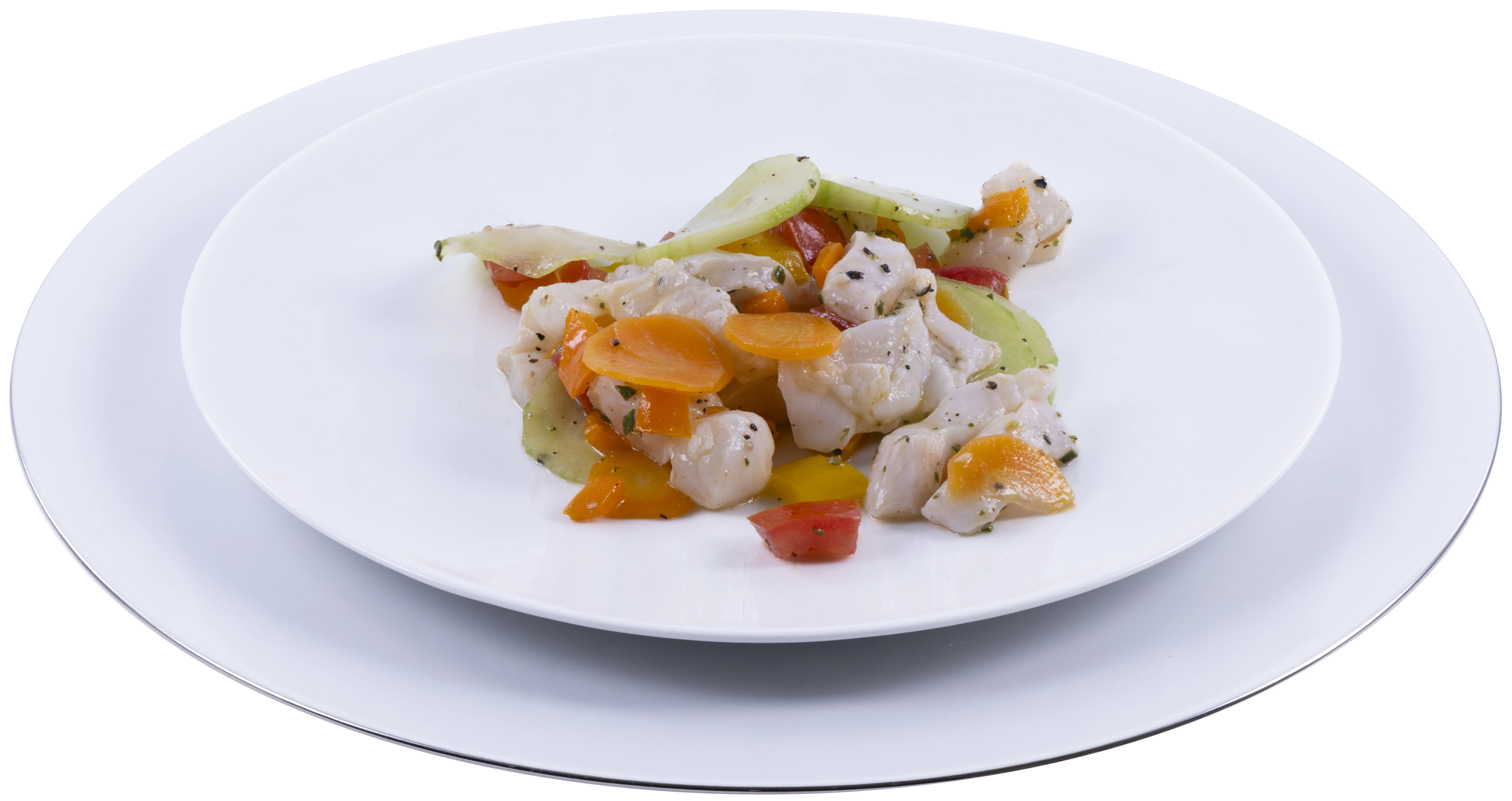 Der Salat kann auch mit anderem weissem Fisch (z.B. Wolfsbarsch, Kabeljau oder Dorade) zubereitet werden. Wichtig ist die Frische des Fisches